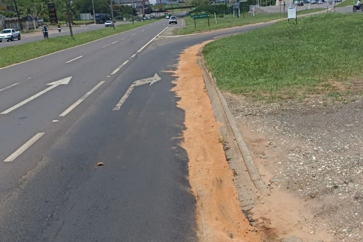 Condutores devem ter cuidado devido a óleo na pista próximo à entrada do Parque Industrial, em Umuarama