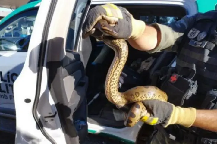 A Polícia Militar de Candói/PR foi acionada pela Defesa Civil do município para dar apoio a uma ocorrência, onde uma cobra sucuri foi encontrada dentro de um veículo que estava estacionado no pátio de um posto de combustíveis. A situação aconteceu na segunda-feira (6).