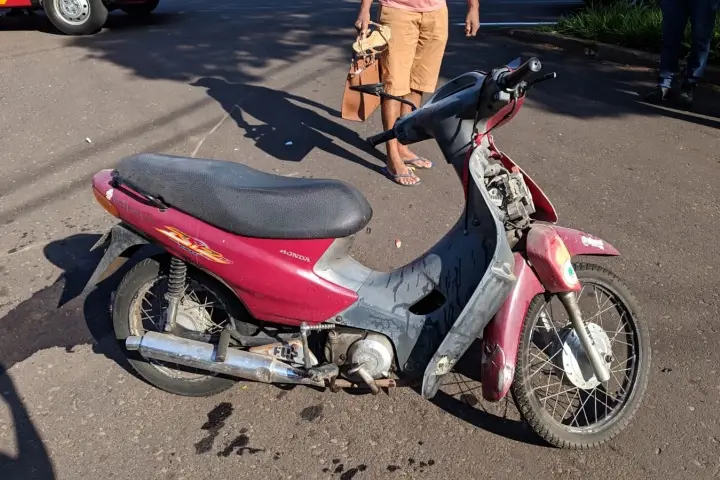 Uma condutora de Honda Biz, de 40 anos, ficou ferida após ser derrubada durante uma colisão com uma caminhonete Ford F1000, conduzida por um homem e 66 anos, na avenida Brasil, em Umuarama, na manhã desta quarta-feira (8). De acordo com a Polícia Militar (PM), o condutor realizou uma conversão em local proibido para entrar em um posto de combustíveis e acabou entrando na frente da vítima.
