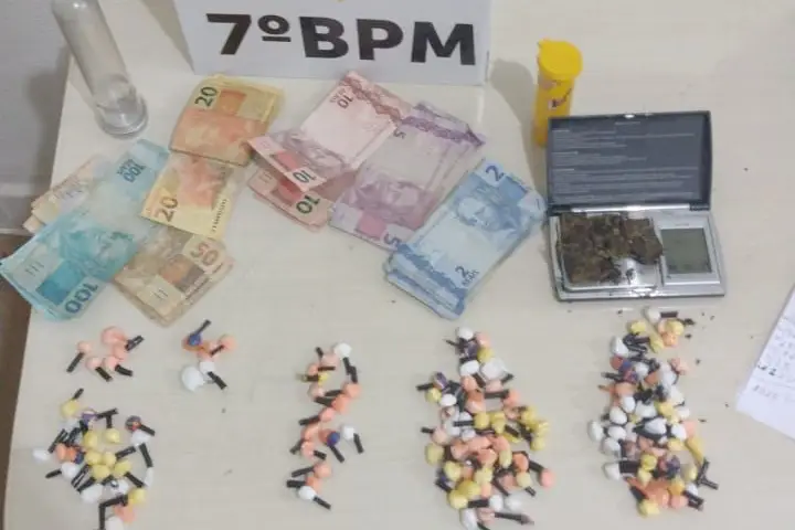 A polícia militar realizou a diligência até o local informado pelo casal como ponto de venda de entorpecentes e abordou um homem que se encontrava na calçada. Com ele foram localizadas porções de cocaína e uma quantidade em dinheiro.
