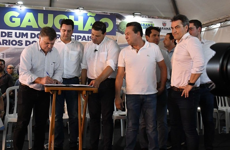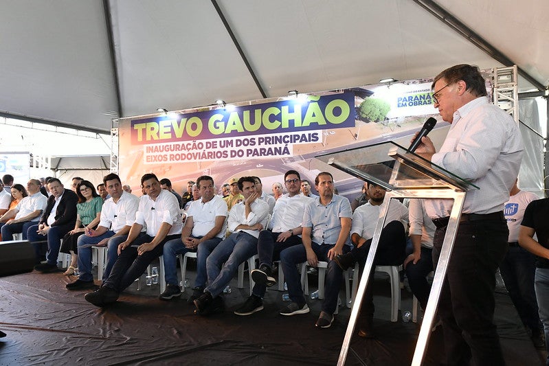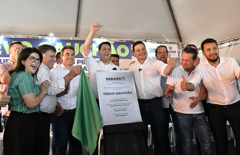 Na inauguração do Trevo do Gauchão, Pozzobom agradece apoio de Ratinho Junior