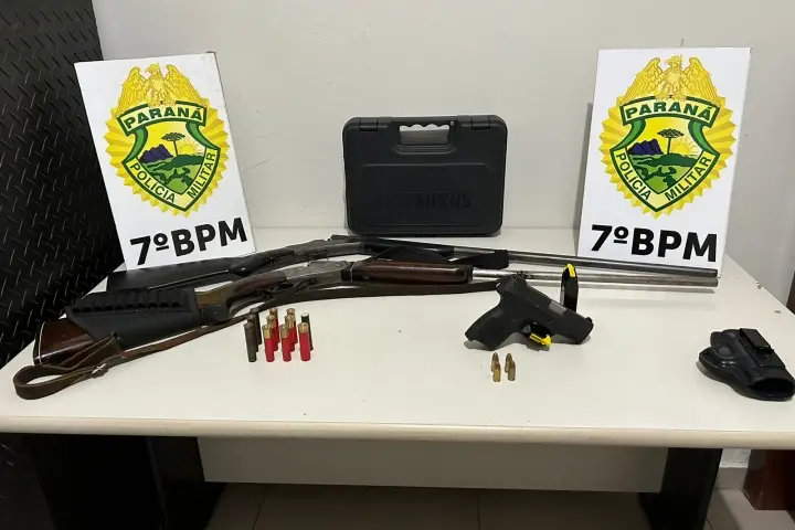 A Polícia Militar (PM) apreendeu, no fim da noite desta sexta-feira (10), duas espingardas, uma pistola e munições de variados calibres ao atender uma ocorrência de violência doméstica em Guaporema – na região de Cidade Gaúcha. De acordo com as informações, um homem, de 53 anos, teria ameaçado e agredido a ex-mulher, de 46, e feito uso de uma das armas para ameaçá-la.