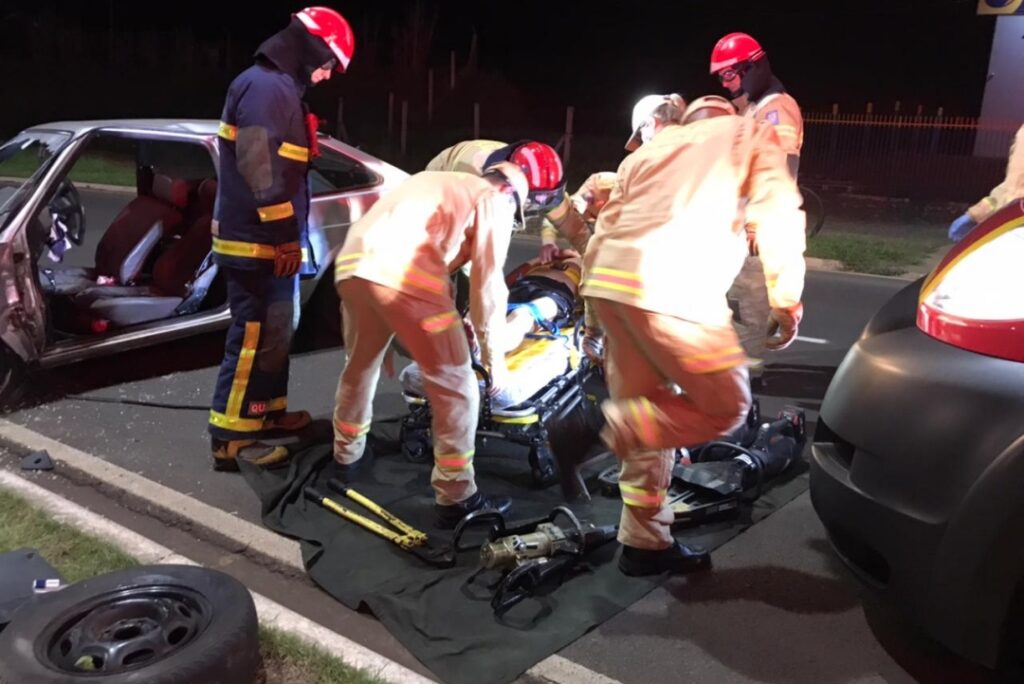 O condutor chegou a ficar enclausurado no carro. Equipes do Corpo de Bombeiros e do Samu socorreram as vítimas
