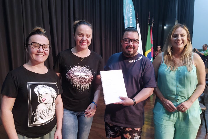 A prefeita de Juranda Leila Miotto Amadeu, ao lado da vice, Joelma Damasceno Demeneck, e do pai do Lucas, João Batista Oliveira, expôs suas expectativas em relação ao filme, que deverá projetar ainda mais o município mundo afora.