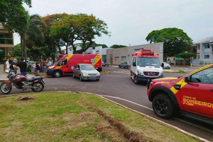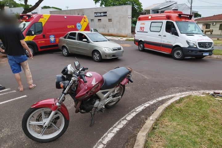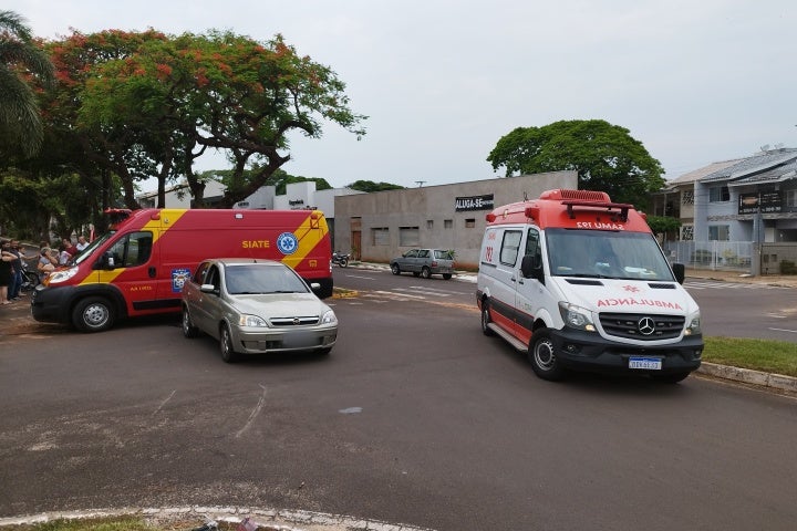 Uma mulher, de 46 anos, e sua filha, de 19, ficaram feridas após uma colisão entre uma motocicleta Honda Twister e um Corsa Classic na manhã desta segunda-feira (13) em um cruzamento da avenida Rio de Janeiro, na Zona II de Umuarama.