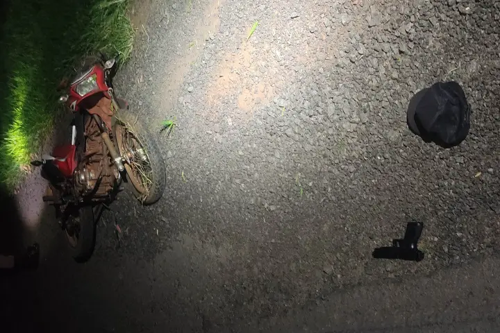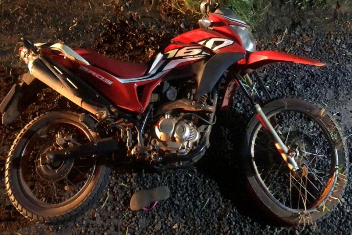 Dupla cai e sofre ferimentos ao tentar fugir da PM com moto roubada e simulacro