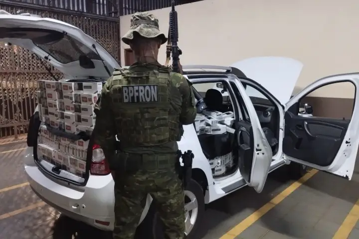 Policiais da 4ª Cia do BPFron (Batalhão de Operações de Fronteira) – com sede em Umuarama – apreenderam um Renault Duster que estava carregado com 750 pacotes de cigarros após uma tentativa de fuga pela estrada Bela Vista, em Perobal. O condutor abandonou o veículo e conseguiu fugir a pé da equipe.