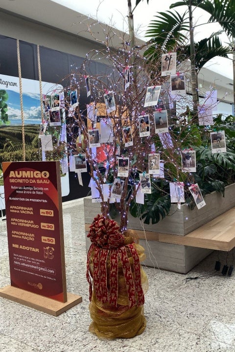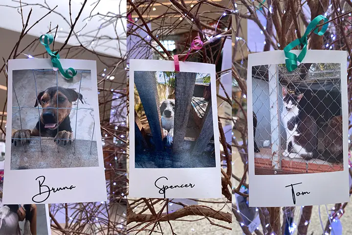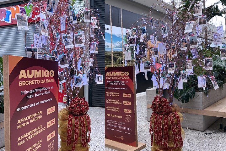 Para participar, os interessados podem escolher um dos animais cujas fotos estão expostas na árvore de Natal do shopping e realizar uma doação. Essa contribuição pode ser uma vacina no valor de R$ 80, um vermífugo de R$ 30 ou ração de R$ 50.