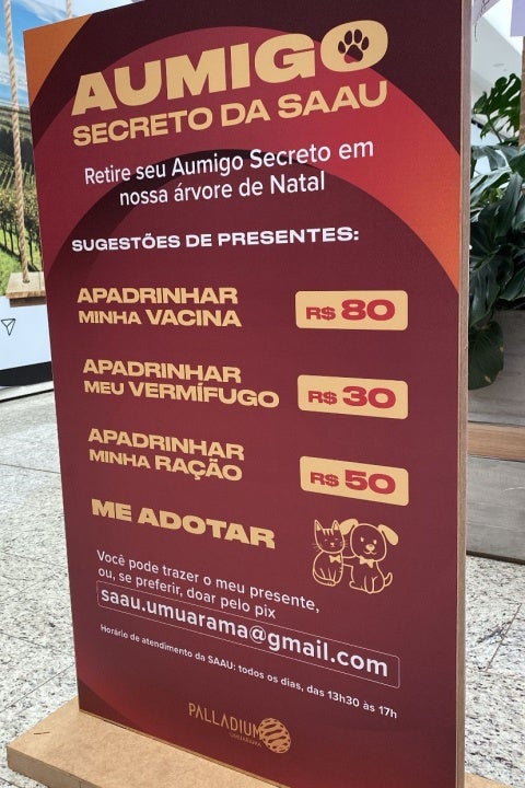 O Shopping Palladium de Umuarama, em parceria com a Sociedade de Amparo aos Animais de Umuarama (Saau), está realizando o evento ‘Aumigo Secreto’. A iniciativa tem como propósito apadrinhar os animais acolhidos pela entidade e busca incentivar a colaboração da comunidade.
