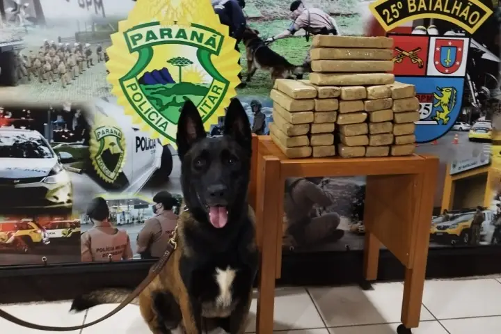 Uma mulher, de 20 anos, foi presa por transportar 23,98 quilos de maconha dentro de uma bagagem em um ônibus na Rodoviária de Umuarama, que fazia linha Dourados (MS) para São Paulo (SP). A abordagem aconteceu durante uma operação na noite desta sexta-feira (17) e a droga foi localizada com auxílio do cão farejador Átila, do 25º Batalhão de Polícia Militar (BPM).