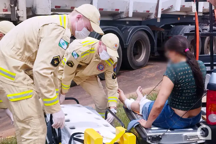 A motociclista caiu e teve escoriações no braço e ferimentos na perna esquerda. Ela foi socorrida pela equipe do Corpo de Bombeiros e encaminhada para o Pronto Atendimento Municipal. O condutor do carro não se feriu.