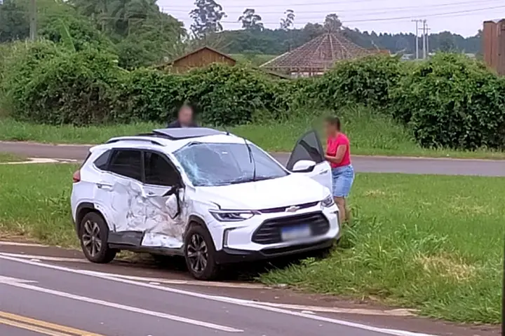 As informações preliminares indicam que o condutor do carro tentou fazer uma conversão no trevo e acabou sendo atingido pelo caminhão. O veículo de maior porte bateu na porta da passageira do Tracker.