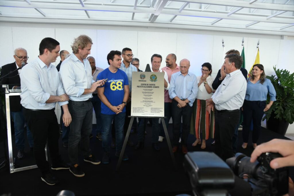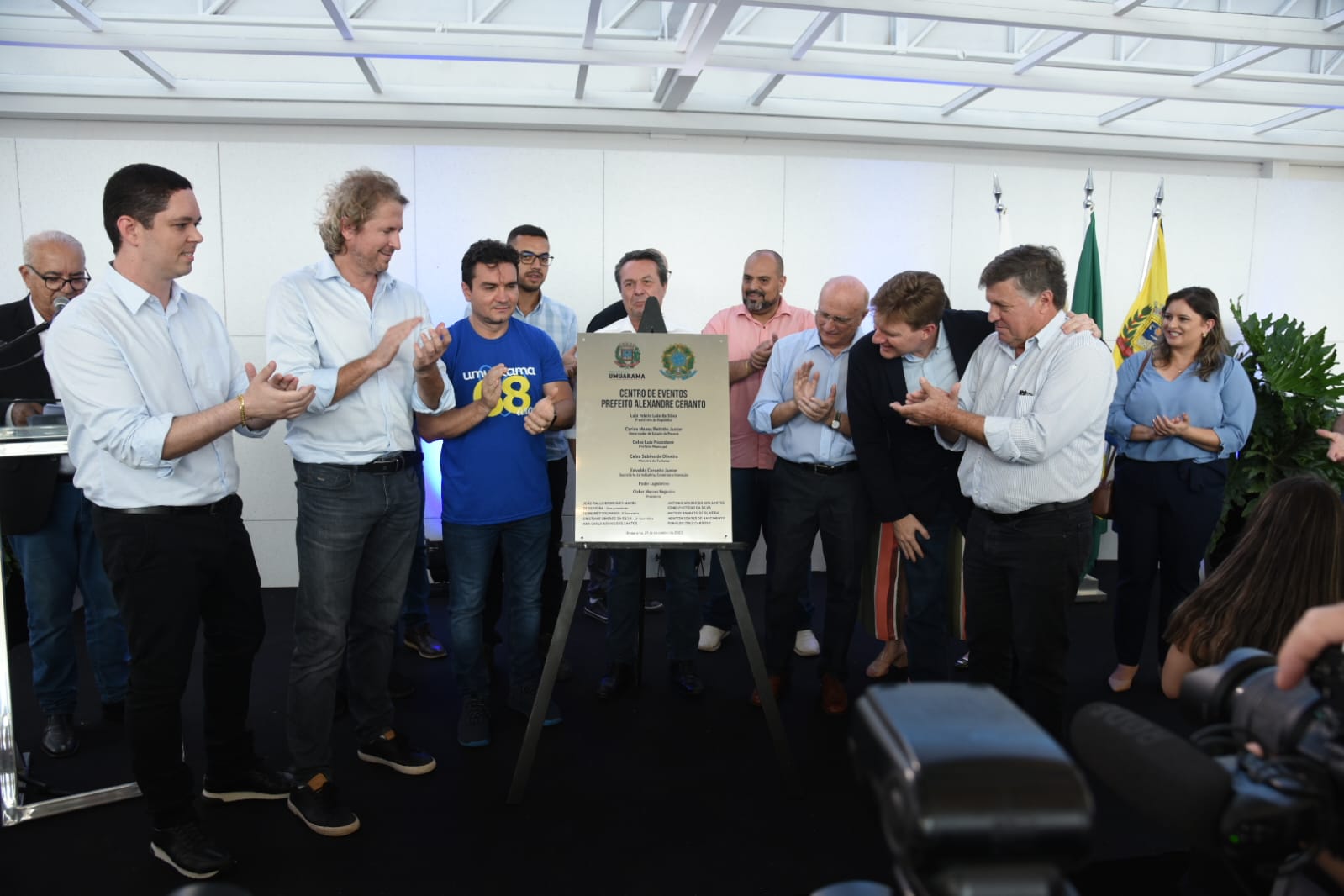 Aconteceu na tarde desta terça-feira (21) a inauguração do Centro de Eventos Prefeito Alexandre Ceranto em Umuarama. O evento contou com a presença do ministro do Turismo, Celso Sabino de Oliveira que, junto com o prefeito Celso Pozzobom, descerrou a placa inaugural da obra que recebeu investimentos na ordem de R$ 15.203.623,39 e demorou cerca de 13 anos para ser concluída.