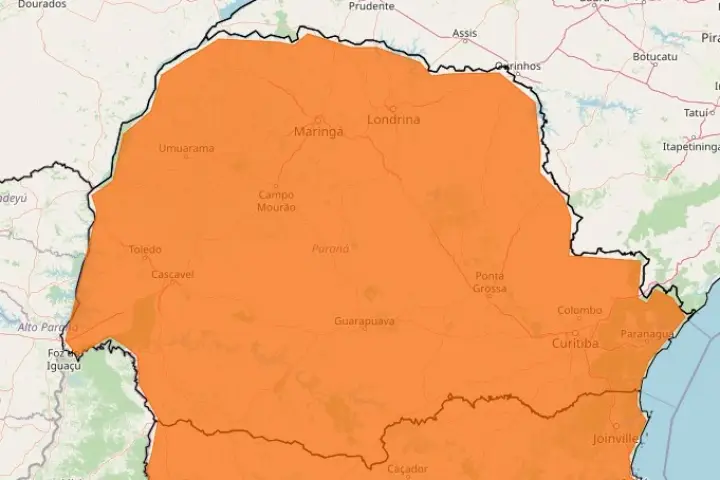 O Inmet (Instituto Nacional de Meteorologia) também programou um alerta laranja laranja – com risco moderado de perigo – para a partir das 15h desta quarta-feira (22), chamando a atenção para possibilidade de temporais em todo o território do Paraná, o que abrange Umuarama.