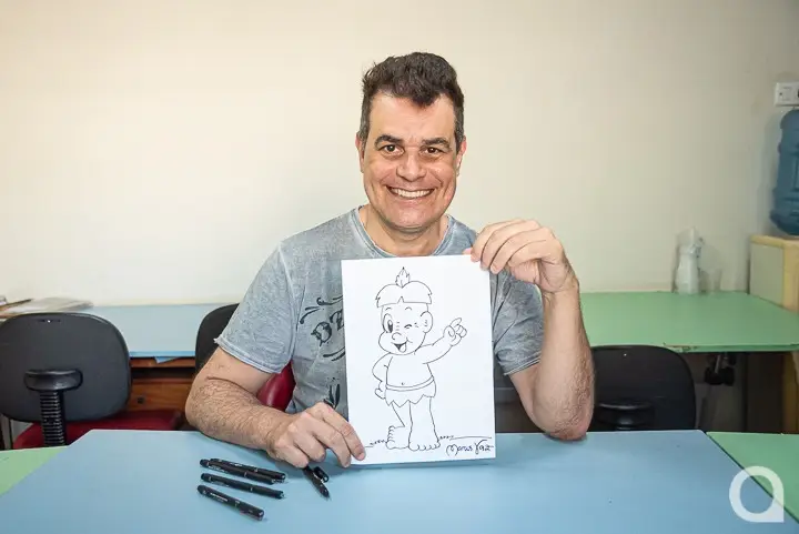 Marcos Vaz é autor de mais de duzentos personagens de história em quadrinhos; Umuaraminha é um deles - Fotos: Danilo Martins/OBemdito