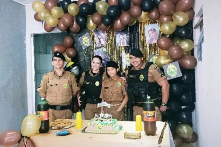 De acordo com Lucilene, mãe de Maria Vitória, a filha sempre teve o sonho de receber uma festa com a decoração da PMPR, pois quer ser policial quando crescer.