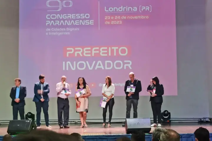 Municípios que investem em políticas de inovação foram premiados pelo Governo do Estado durante a 9ª edição do Congresso Paranaense de Cidades Digitais e Inteligentes, realizado nos dias 23 e 24 de novembro no teatro do Colégio Londrinense – UniFil. No evento, Umuarama recebeu troféu e o certificado ‘Prefeito Inovador’, entregue a Celso Pozzobom por utilizar a tecnologia de forma estratégica para melhorar a gestão pública e a vida dos cidadãos.