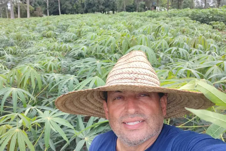 Já o produtor de Umuarama (PR), Ailton Francisco da Costa, também enviou uma foto dele em meio a plantação de mandioca. Costa está muito satisfeito com o andamento da sua produção, pois está crescendo com muito vigor.