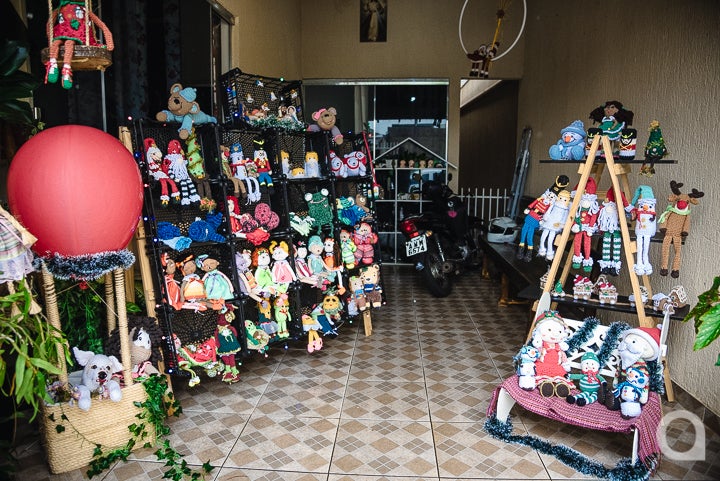 Além das peças prontas, Sandra também faz encomendas personalizadas, como por exemplo, reproduzindo pessoas como bonecos, inclusive utilizando fotos de família para criar os personagens.