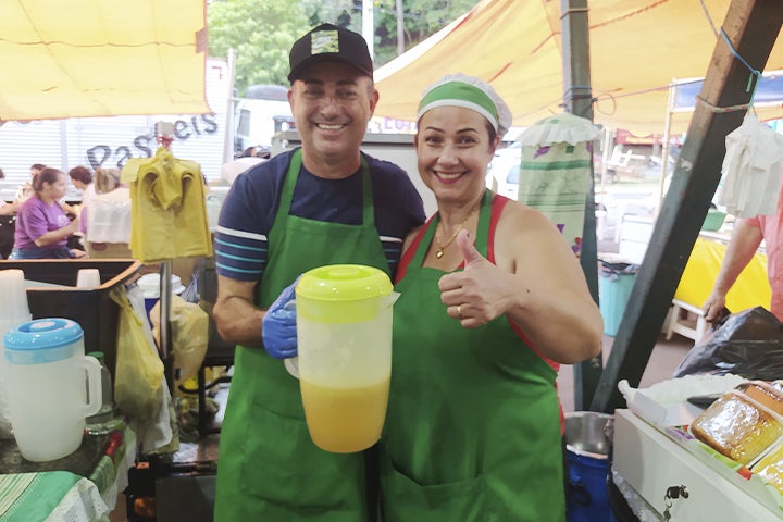 Sempre sorrindo, a precursora do negócio ambulante comenta que começou antes, mas a parceria do marido fazia parte do plano. Ele também largou a profissão – era caminhoneiro – para se dedicar exclusivamente à empresa que se chama ‘Stabile Caldo de Cana’.