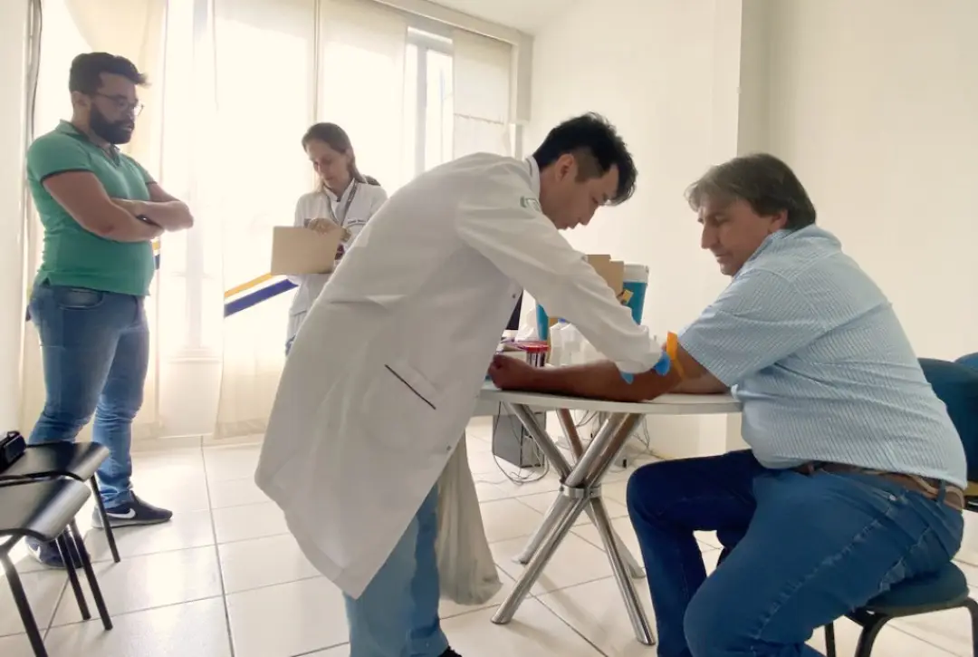 A coleta de sangue para os exames foi feita em sala especialmente adequada para receber os servidores, em trabalho realizado pela biomédica Tatiana Rech e pelo farmacêutico-bioquímico Robson Nakano, do Laboratório São Francisco. “Os resultados dos exames ficam prontos já na próxima semana e serão entregues na Secretaria de Saúde, que irá cuidar da distribuição dos envelopes”, explicou Tatiana.