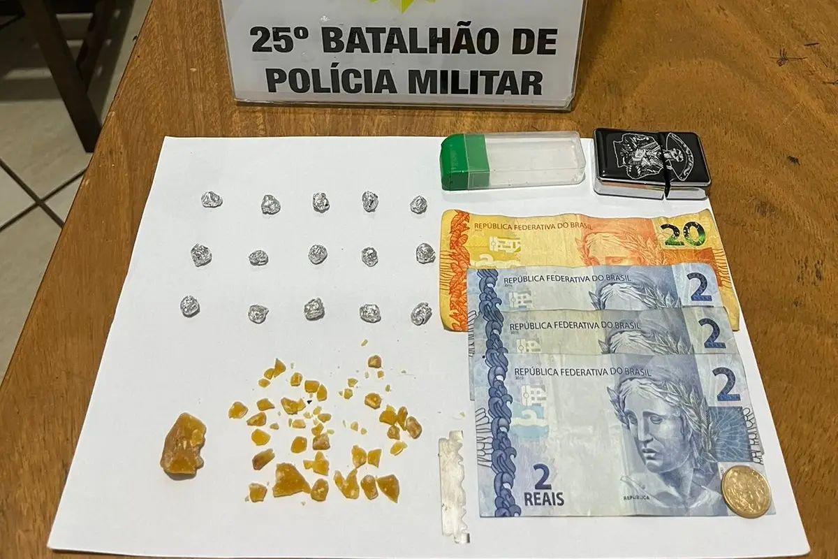 Um homem, de 28 anos, foi detido pela Polícia Militar (PM) na noite desta quinta-feira (30), após ser flagrado em posse de porções de crack fracionadas para a venda, dinheiro e uma lâmina para porcionamento. De acordo com as informações, ele teria tentado fugir da abordagem e quase engoliu a droga para evitar o flagrante.