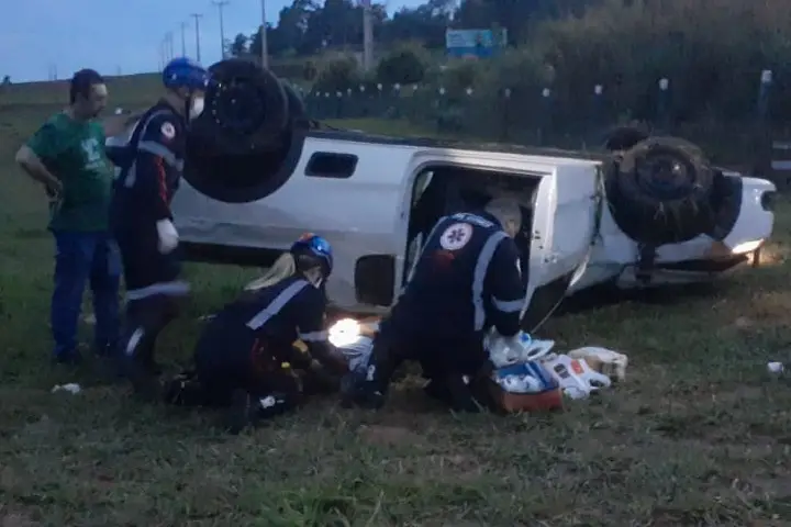 Conforme as informações de pessoas que passavam pelo local, o condutor de um veículo Volkswagen/Saveiro acabou capotando o veículo após se perder na rodovia.