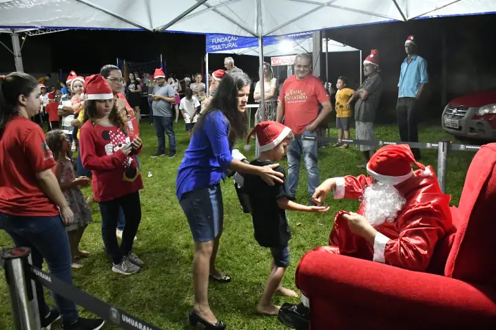 A chegada do Papai Noel ao distrito de Roberto Silveira, na noite de segunda-feira (4), abriu as atrações do Natal Encantado de Umuarama, preparado com carinho pela Prefeitura para brindar a população neste fim de ano.