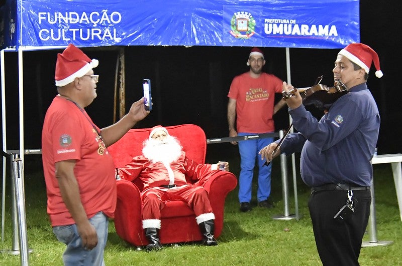A chegada do Papai Noel a Umuarama, em grandioso desfile pela avenida Paraná, será na noite no próximo dia 13. Em Roberto Silveira, além de ganhar balas e tirar fotos com o Papai Noel, a criançada se divertiu com brinquedos gratuitos, distribuição de pipoca, passeios no Bondinho da Alegria e para os adultos um concerto emocionante da Banda Municipal 26 de Junho, que apresentou clássicos natalinos, canções populares e música sertaneja.