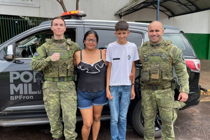 O jovem Wellington, estudante do Colégio Estadual Cívico Militar Padre Manuel da Nóbrega, de Umuarama, recebeu uma visita muito especial nesta quinta-feira (7), data em que ele celebra seus 15 anos. Ele, que é admirador da Polícia Militar (PM), foi visitado por policiais da 4ª Cia do BPFron (Batalhão de Operações de Fronteira).