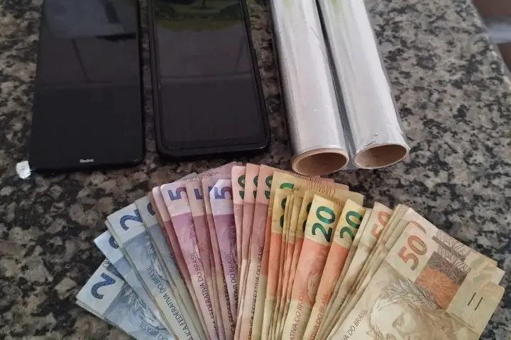 Durante a busca na casa foram encontrados em sua bolsa R$ 744 em dinheiro, rolos de papel alumínio e dois celulares. Tudo foi apreendido.