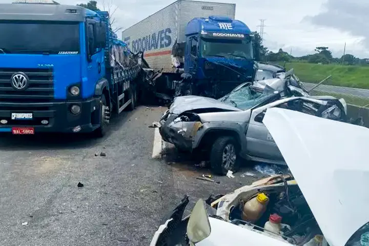 De acordo com testemunhas, uma carreta em alta velocidade atingiu os veículos causando o acidente. Um motorista ficou preso às ferragens e os bombeiros trabalharam por mais de quarenta minutos no resgate.