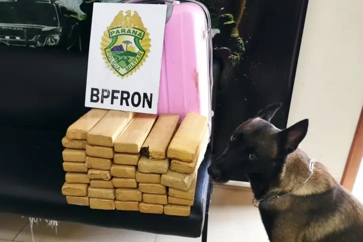 Segundo o órgão, os militares da equipe de Operações com Cães estavam fiscalizando o Terminal quando, em vistoria ao compartimento de cargas do coletivo – que fazia linha Cascavel x Brasília -, encontraram em uma mala rosa os diversos tabletes da droga, que após pesados, somaram aproximadamente 20 quilos.