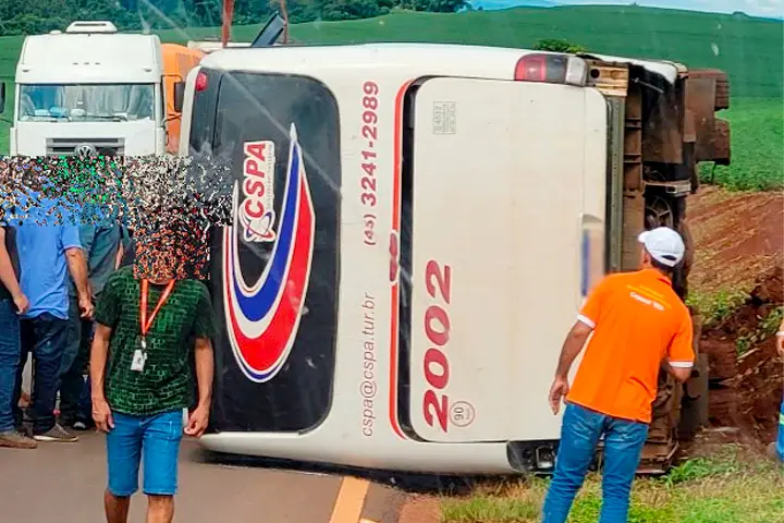 Um ônibus com pessoas que trabalham no abatedouro de peixes tombou na rodovia PR-180, na curva da mexeriqueira município de Nova Aurora. As informações são do site Goionews.