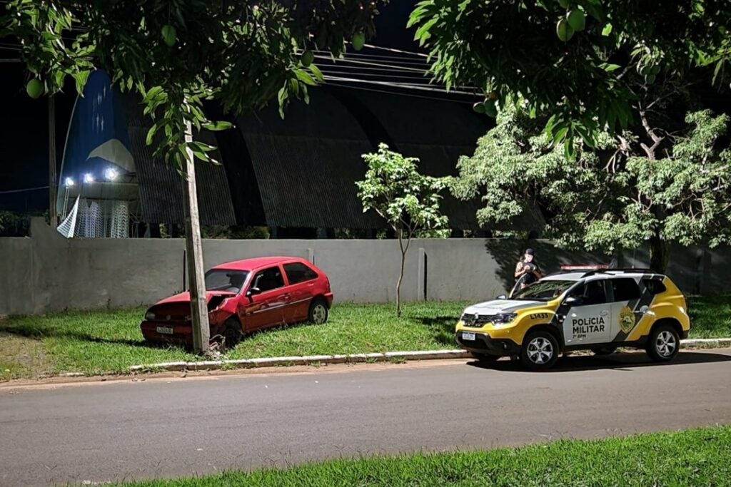 Um veículo foi abandonado após ter colidido contra um poste na cidade de Cruzeiro do Oeste. A situação aconteceu na noite desta sexta-feira (8), na avenida Brasil.
