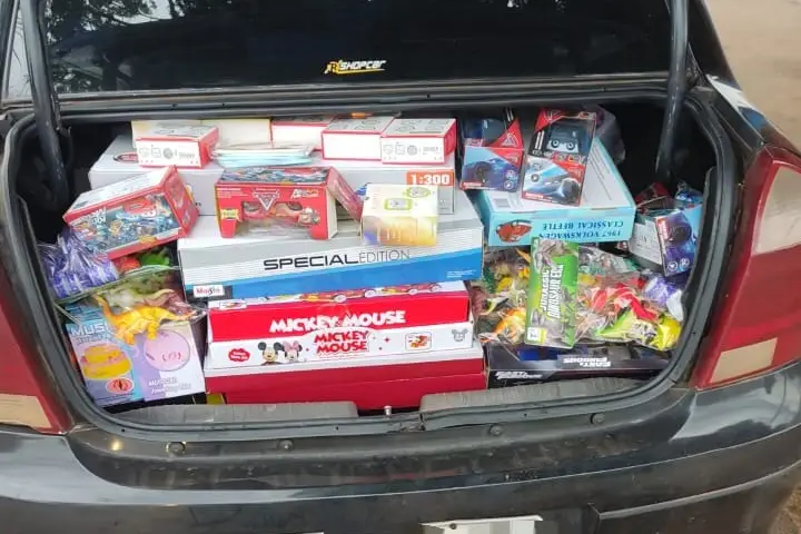 No veículo, que tinha placas de Caldas Novas, GO, os militares encontraram 5 caixas de vinhos, 33 caixas com mini carrinhos de brinquedo, além de xícaras, perfumes, roteadores de internet, fones de ouvido, aparelhos de rádio, câmeras, óculos para natação e cigarros eletrônicos.