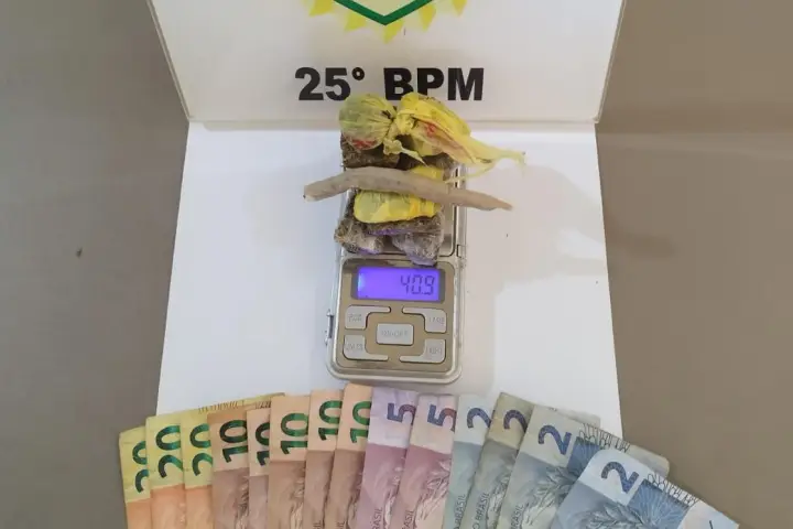 Após monitoramento e identificação, os suspeitos foram abordados. Com eles, os militares encontraram 10 porções de maconha, totalizando 40.9 gramas, além de R$128 em dinheiro e um telefone celular.