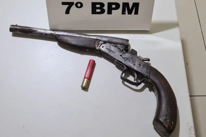 A cerca de 5 quilômetros da cidade, os policiais conseguiram abordar o condutor da motocicleta, de 22 anos, que estava em posse de uma garrucha calibre .36. Em conversa com a equipe, ele apontou o endereço de onde estaria o carro roubado.