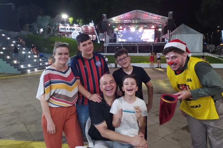 Numa mesa a dois metros dali, estava a família do cartorário Manuel Vieira, 51 anos, que mora em Umuarama há um ano [vieram da Bahia] Ele, a esposa Beatriz e os filhos Henrique, Heitor e Artur estavam se divertindo com as mágicas do Palhaço Carlito.