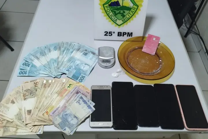 No banheiro, foi abordado o morador, de 35 anos, que recebeu voz de abordagem, porém resistiu e teve que ser contido pelos policiais. Com auxílio do cão Rock, do Canil do 25º Batalhão, foram descobertos vestígios de cocaína em uma balança de precisão na cozinha, além de R$ 354 em notas diversas e 4 celulares.
