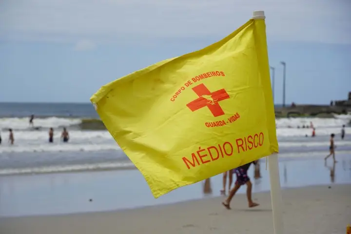 Outra bandeira que assegura condições boas de banho é a verde, que indica risco mínimo de incidentes. A bandeira amarela simboliza sinais de alerta, com presença de fatores de risco que exigem cuidado dos veranistas.