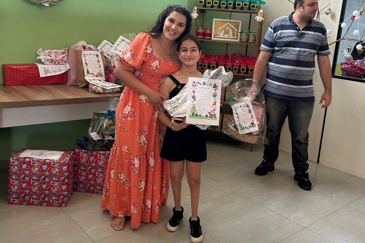 Associação Vida e Solidariedade, da Dona Maria da Sopa, promoveu na segunda-feira (18) uma festa de encerramento das atividades com as crianças. Mais de 50 presentes foram distribuídos atendendo aos pedidos dos participantes, que incluíam materiais escolares, patinetes, kits de pulseiras, calçados, roupas, brinquedos, entre outros.
