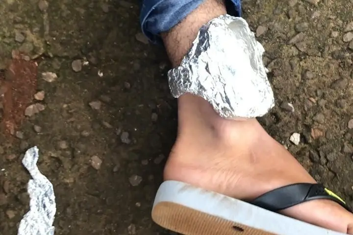 Em revista pessoal, foi encontrado em sua perna direita uma tornozeleira eletrônica enrolada em papel alumínio – prática que é muito utilizada para tentar “ludibriar” o monitoramento de pessoas que utilizam o aparelho. Já a motoneta não comportava nenhum produto ilegal, porém os militares notaram que a parte da numeração do chassi estava recortada, dificultando a identificação.