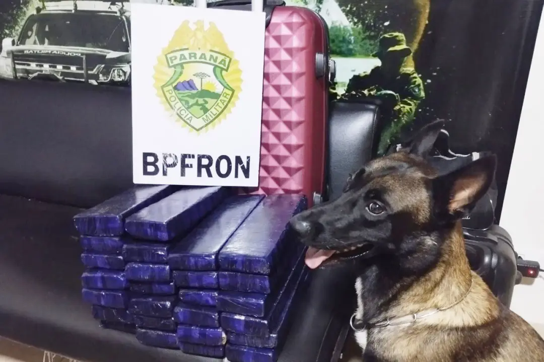 Os Policiais militares do Pelotão de Operações com Cães do BPFron estavam fazendo patrulhamento em Cruzeiro do Oeste quando abordaram um ônibus. Foi empregado o cão de faro de entorpecentes no compartimento de cargas e ele indicou que poderia haver drogas em uma mala.