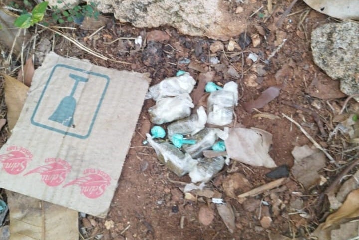 A PM consultou o sistema de informações e verificou que o rapaz conta com várias passagens pela polícia, inclusive por tráfico de drogas. A equipe observou as imediações do ambiente e localizou drogas escondidas embaixo de um papelão, em meio a algumas folhas e entulhos.
