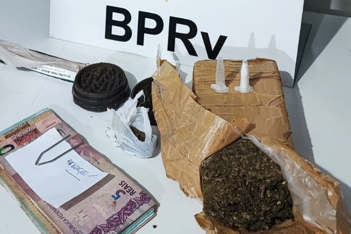 Em revista, os militares encontraram o tablete de maconha e os pinos de cocaína – que estavam com vestígios da droga, porém o entorpecente já havia sido consumido.