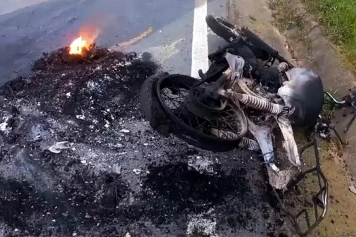 Moto explode e motociclista sofre queimaduras após colidir contra búfalo solto em rodovia