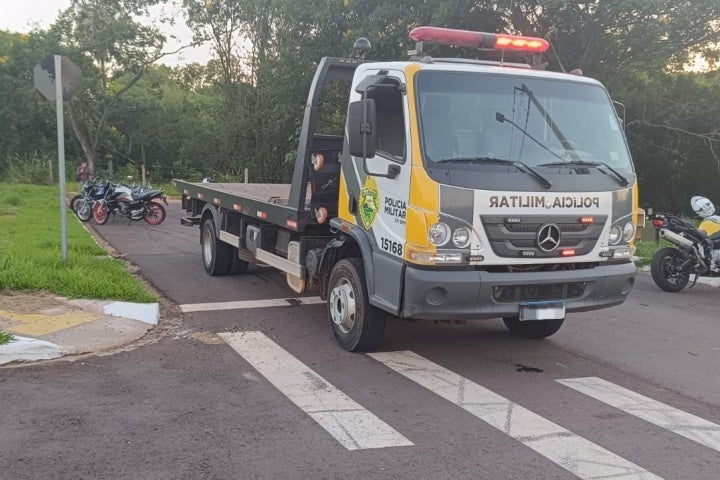 A Polícia Militar (PM) recolheu quatro motocicletas que estavam em situação irregular após uma abordagem que aconteceu no início da noite desta quinta-feira (28), no Jardim Riviera, em Umuarama. A ação teve início após denúncias de moradores do bairro, que apontaram perturbação do sossego alheio devido ao som escapamento dos veículos.