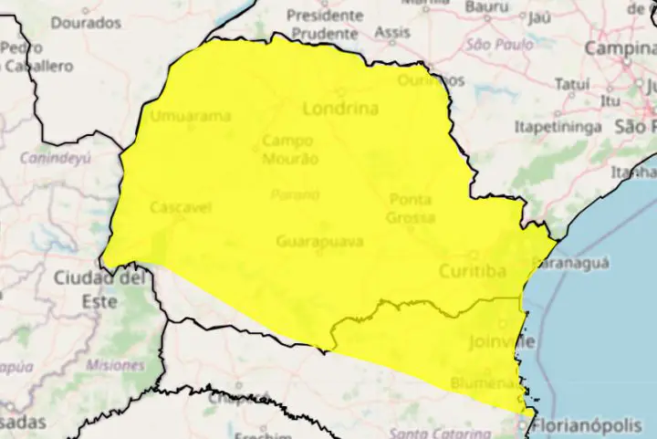 O Instituto Nacional de Meteorologia (Inmet) emitiu um alerta amarelo, classificado como de perigo potencial, para a possibilidade de ocorrência de chuvas quase todas as regiões do Paraná, abrangendo Umuarama e municípios vizinhos. O aviso foi emitido às 8h desta sexta-feira (29) e terá vigência até às 23h59.