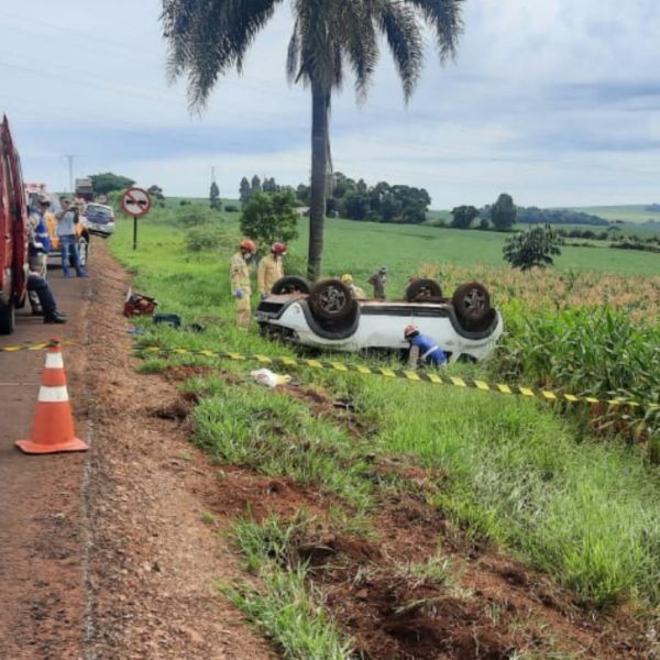 Professora morre após ser ejetada de carro que capotou na PR-486